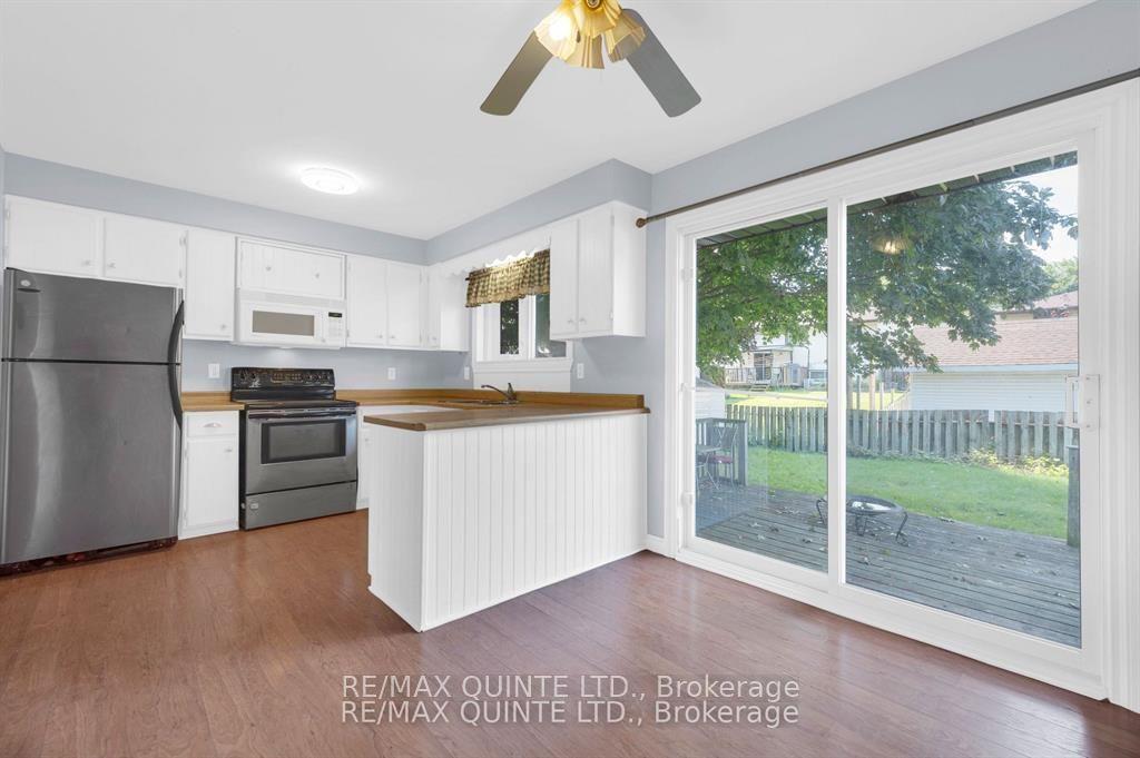 Welcome to 108 Nicholas. This raised bungalow on Trenton’s west side is perfect for a large or growing family. 3 Bedrooms up including an oversized primary bedroom with double closets and access to the main floor 4-piece bath. Large living room and and kitchenwith attached dining area with sliding glass doors leading out to the rear 14 x 14 deck. Great backyard fully fenced, with mature maple for lots of shade. Downstairs there are 2 more bedrooms and rec room or a potential sixth bedroom. Lower level also has a 3-piece bath and large unfinished laundry room that could be finished for additional living space. 200 amp service with basdeboard heating throughout but natural gas wall heater upstairs and Nat gas HWT are both rentals. Gas fireplace on lower level (not working). Full of updates including doors & windows, bathrooms, shingles (2015), eavestrough soffit & fascia. electrical panel, and flooring. Full house painted in 2020. All appliances included. Currently tenanted and Tenant would consider staying if desired. 24 hours’ notice for all showings, please. Move in ready home close to downtown and the 401 in great West end residential neighborhood. School bus route and many other amenities in the immediate area. Hydro pad mounted transformer in front yard. Paved driveway with parking for 2-3 vehicles.